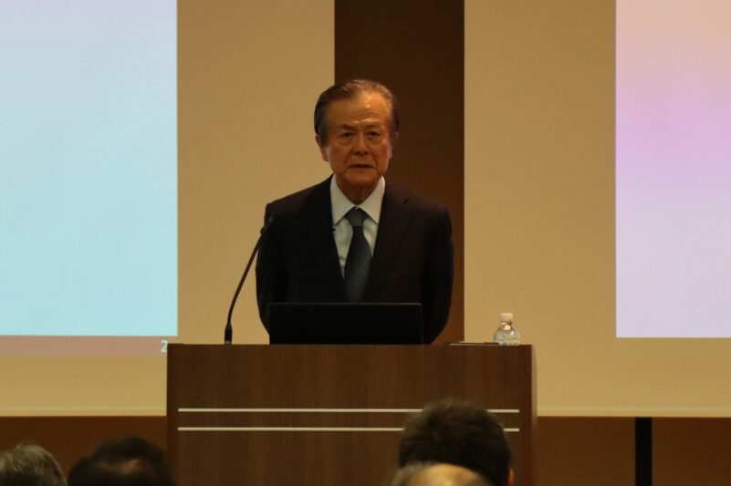 長谷山理事長から開会の挨拶を行った後、教育イノベーションセンター(ICE)やオープンイノベーションセンター(ACE)を中心に商農工連携・融合の取り組みを推し進めていることや、多様なステークホルダーとの一元的な窓口として産学官金連携統合情報センター(IIC)を2024年4月に開設したこと、三大学の教育・研究連携の財政基盤を強化し、産学連携活動を支援するため、「ヒトづくり・モノづくり基金」を創設したことなどの説明を行いました。