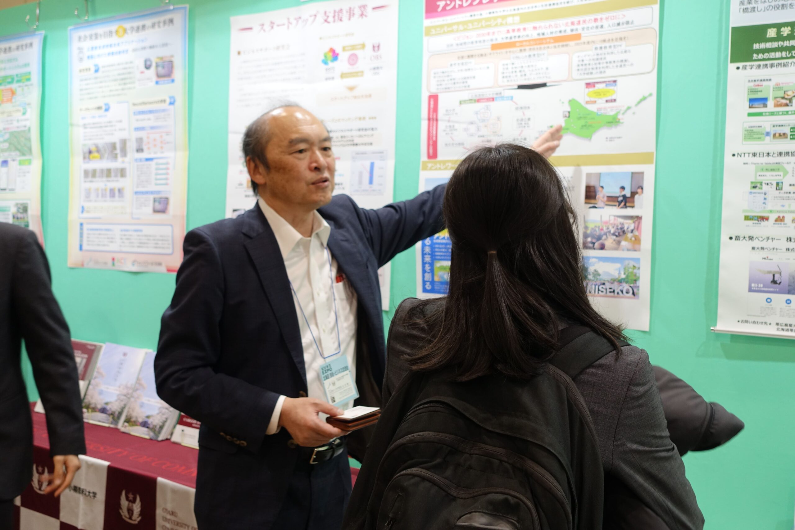 本イベントは、北海道最大級のビジネスイベントであり、第39回目となった今年度は<大変革に挑む 北海道~ポテンシャルを真価に変える“未来創造イノベーション”~>をテーマに、当機構が展示する「学術・試験研究機関展示ゾーン」のほか、「ITビジネス展示ゾーン」、「ものづくり・電気・機械ビジネス展示ゾーン」、「地域創造ビジネス展示ゾーン」、「環境・バイオビジネス展示ゾーン」、「先端技術ゾーン」、「未来創造ゾーン」の7つのゾーンでの展示が行われ、北海道の教育・研究機関や企業等、307機関がブース出展しました。