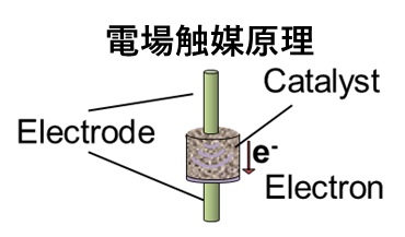 そこで、雷のような高電圧を従来のような触媒反応場に印加する『電場触媒』という技術に着目し、二酸化炭素・メタンの回収・資源化の低コスト・低エネルギー化を目指し、企業ともスクラムを組みながら、早期の社会実装に向けて、日々研究に取り組んでいる。