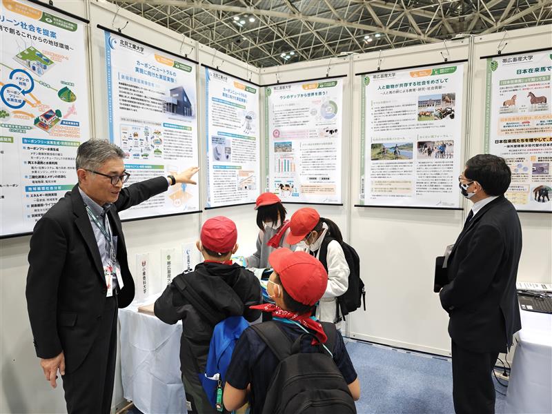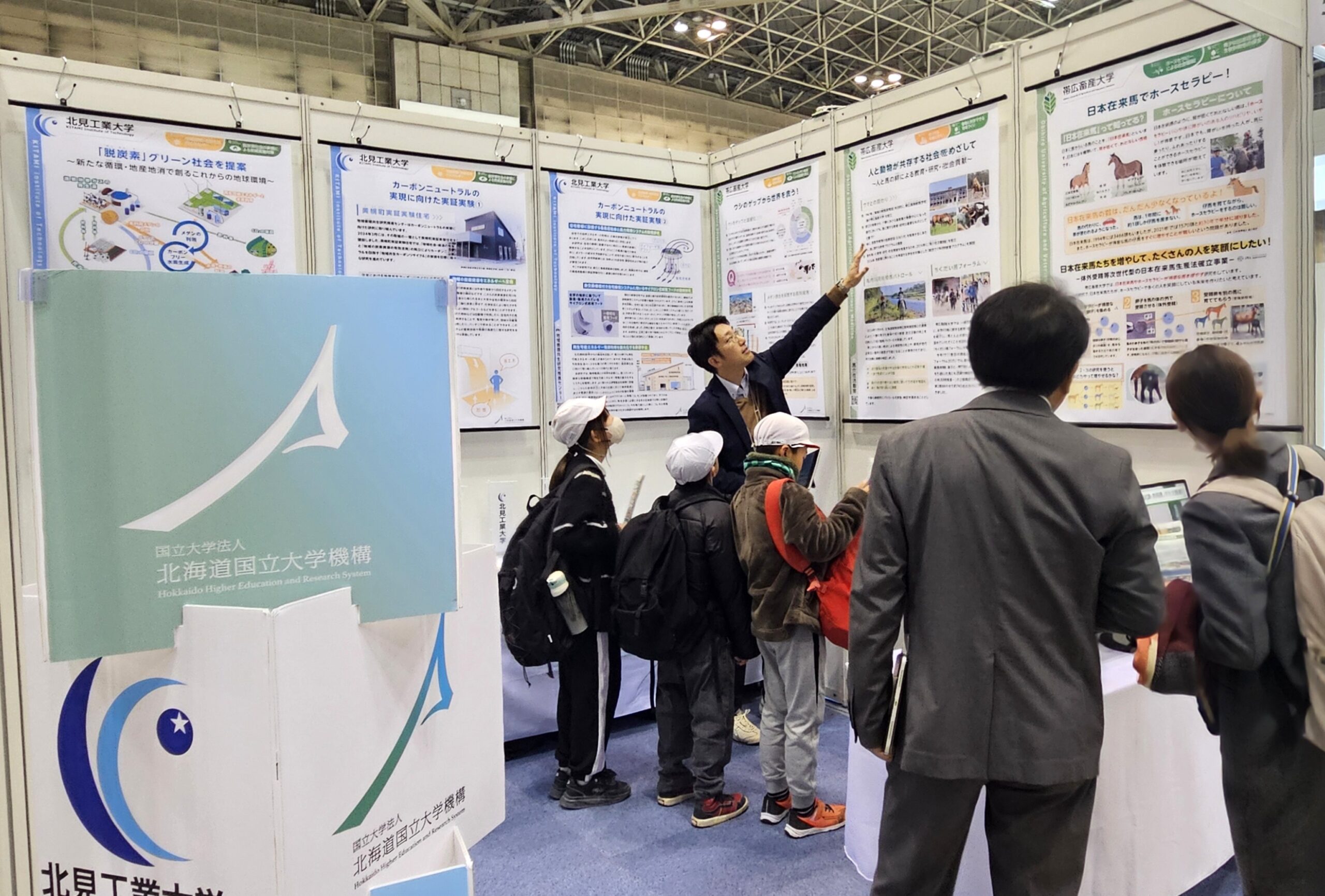 当機構の出展は昨年に引き続き2回目で、今回は「美幌実証実験住宅」や「メタンを抑制する飼料開発」などの気候変動の原因である温室効果ガスを削減・再利用するための研究や、「日本在来馬生産法確立事業」、「日本在来馬によるホースセラピー」などの生物多様性や動物との共生に関する取組をご紹介しました。