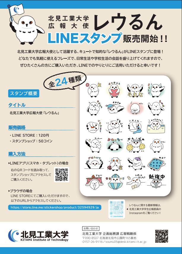 【プレスリリース】【北見工業大学】北見工業大学広報大使キャラクター「レウるん」のLINEスタンプを販売開始