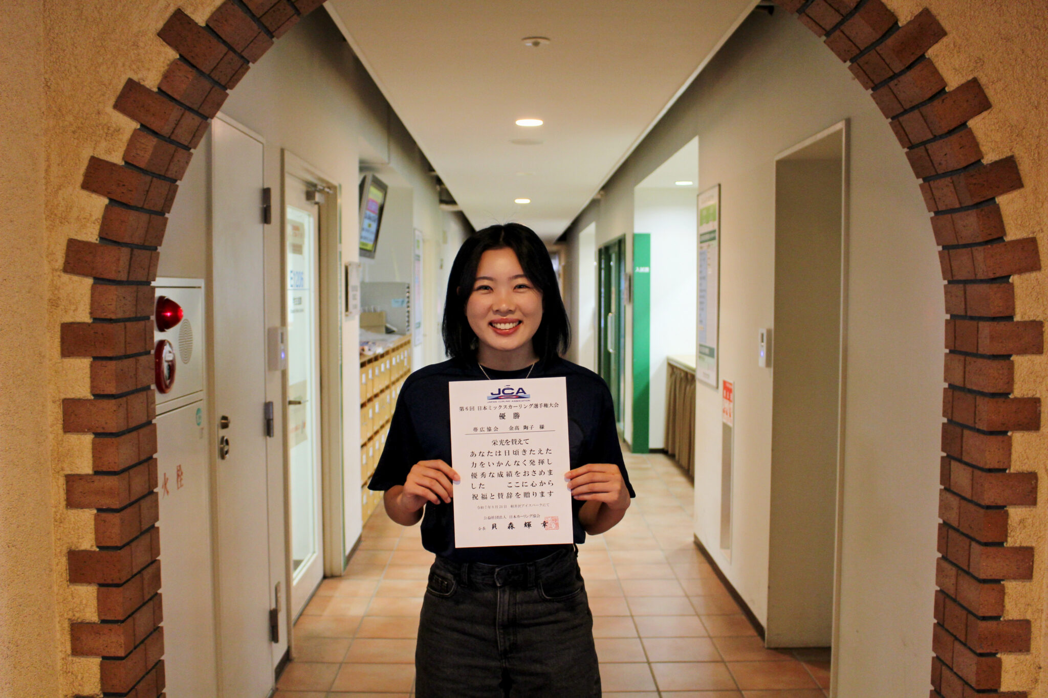 金高さんは本学入学後にカーリングを始め、現在は本学カーリング部にも所属し、仲間と楽しみながら活動を続けています。今大会を、「試合は緊張しましたが、楽しむことを意識して挑みました。序盤はテイクがうまくいかなかったので、ドローに作戦を切り替えることでショットの成功率を維持し、その場面に適したショットを打つことができました。」と振り返りました。