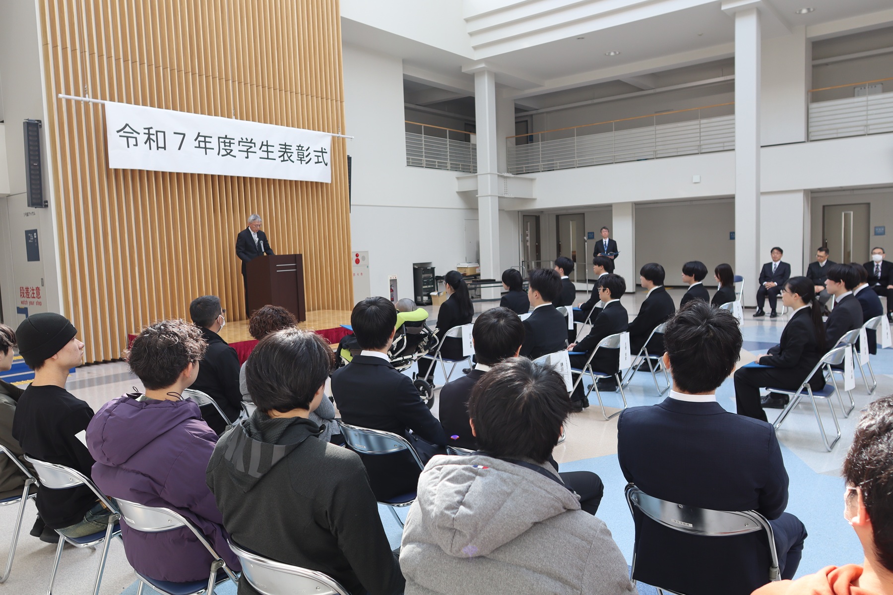 3月9日(月)、北見工業大学コミュニケーションアトリウムにおいて、「令和7年度学生表彰式」を挙行し、成績優秀学生、学長賞、ミント賞の受賞者をそれぞれ表彰しました。